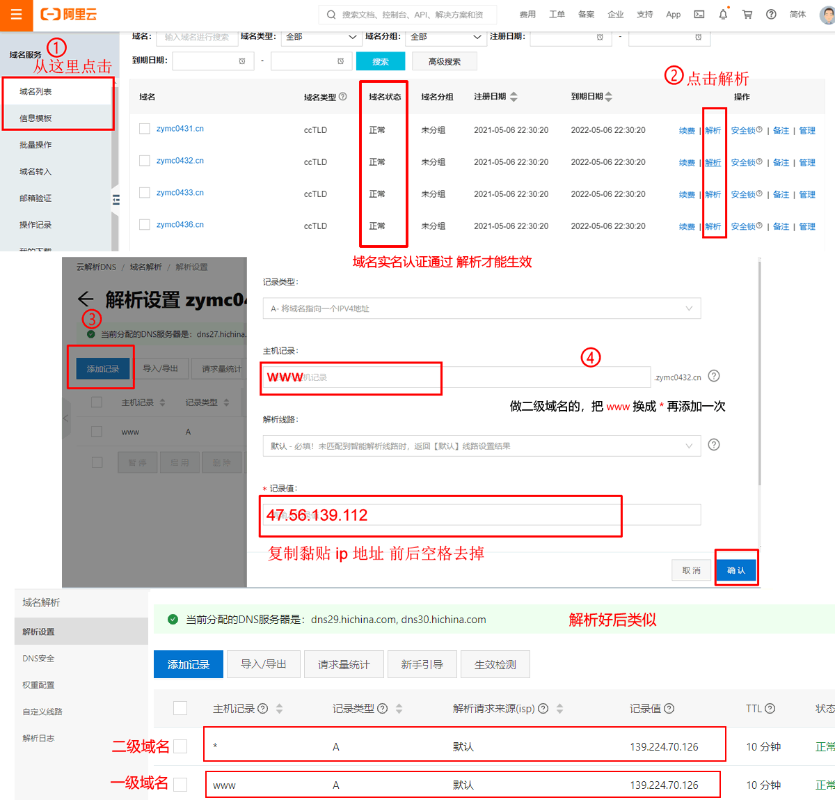5. 備案完成再解析,一個域名對應一個ip。