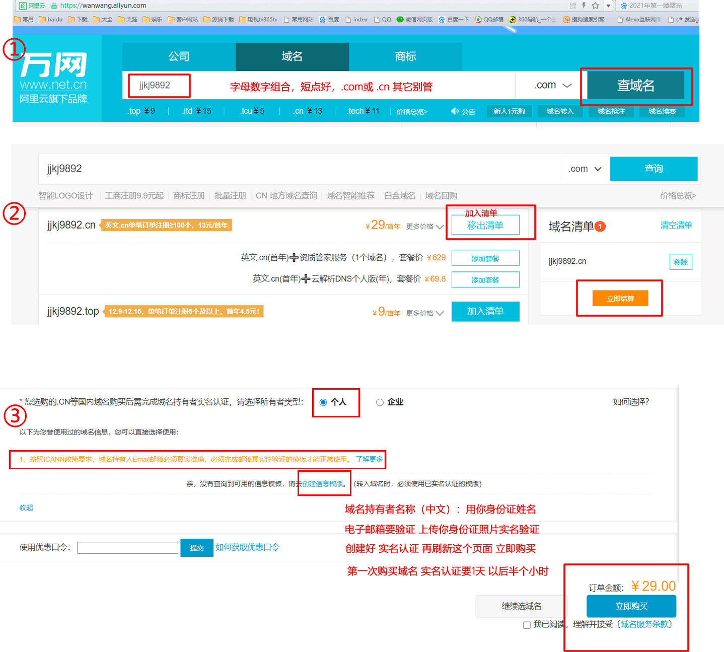 域名信息模板認證中不影響你購買域名、域名實名認證成功3天后才能備案。